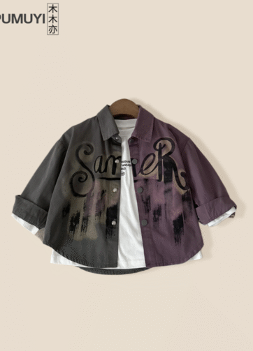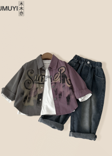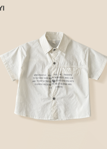 Áo somi chữ ngắn tay bé trai 2025.