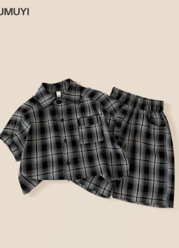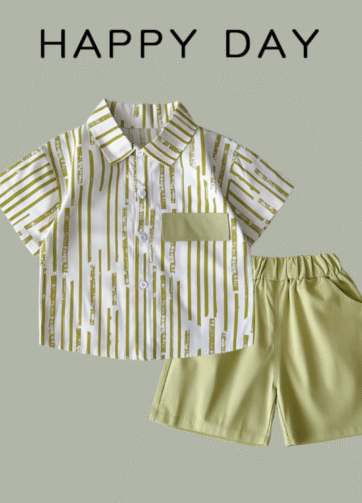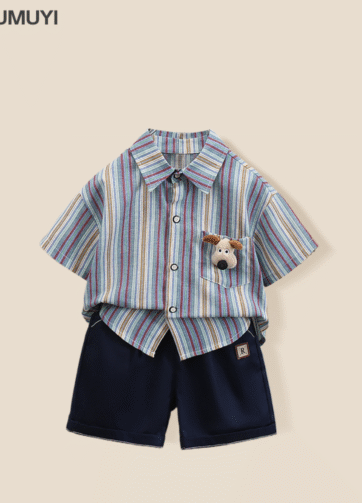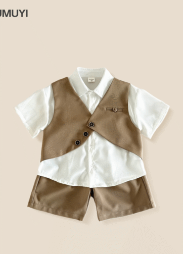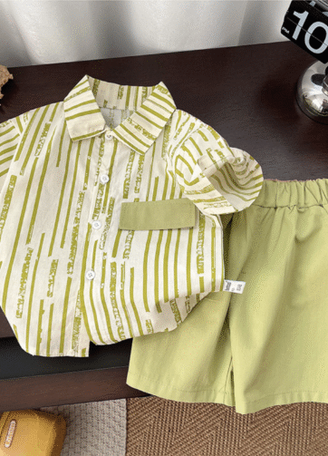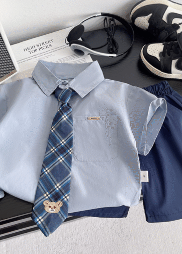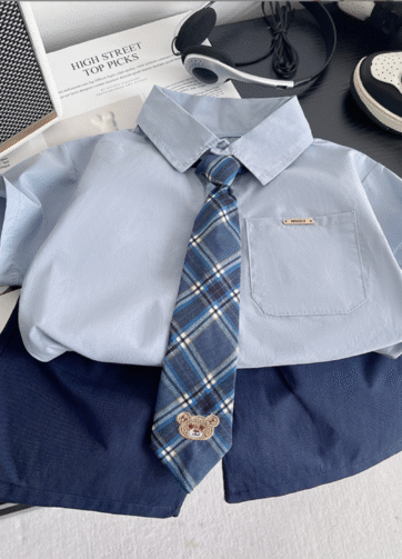Set áo somi quần short bé trai hè 2025.