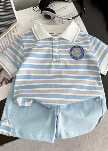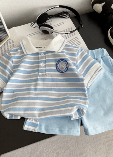 Set polo xanh bé trai.